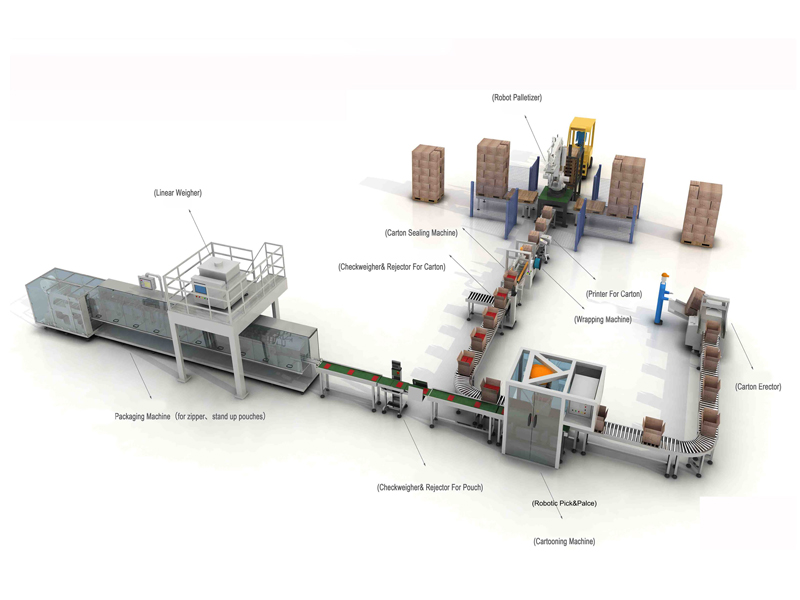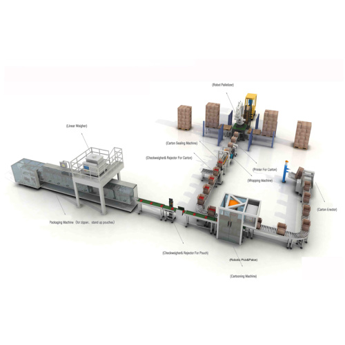 نطاق التطبيق لخط ما بعد التغليف المخصص: في علب، في كرتون، في أكياس، إلخ.
